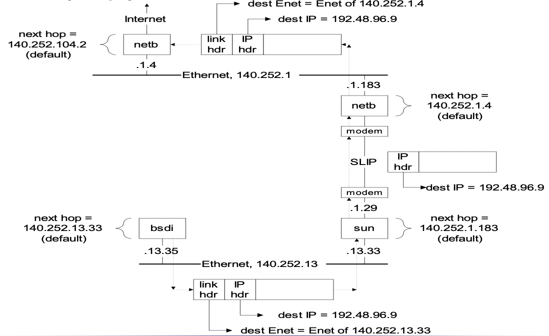 bsdi(140.252.13.35)가 ftp.uu.net(192.48.96.9)로 IP datagram을 보내는 경우