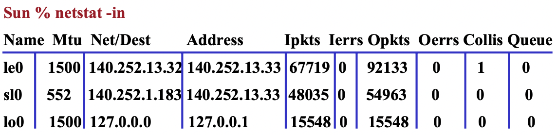 -a: 모든 인터페이스를 알려줌(Only sunOS 존재)