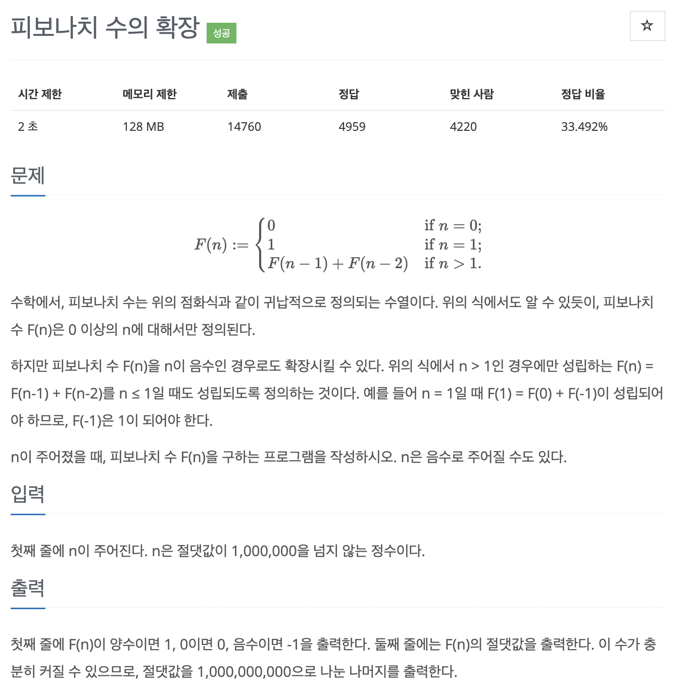 피보나치 수 f(n)을 음수인 경우로도 확장