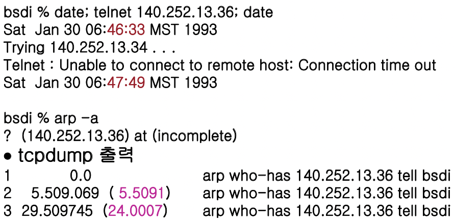 존재하지 않는 호스트로의 ARP 요구(ARP Request to a Nonexistent Host)