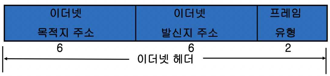 이더넷 헤더: 14 바이트(6 + 6 + 2)