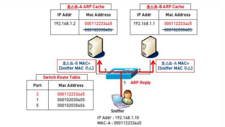 -> 다른 호스트들의 ARP 캐시가 당연히 근거 없는 ARP 모니터링해서 저장정보 갱신