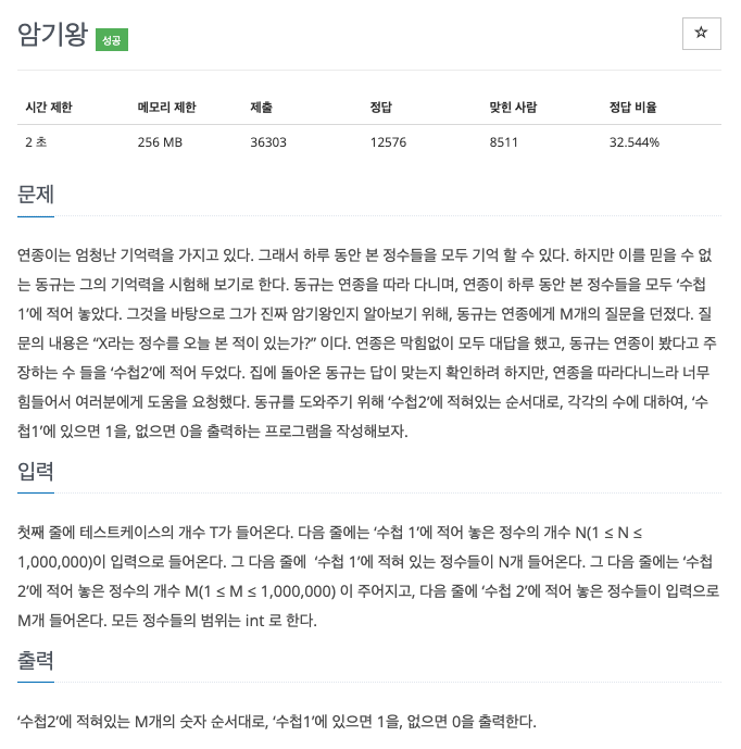 수첩 2에 적어 놓은 정수의 개수 M (1 <= M <= 1,000,000)