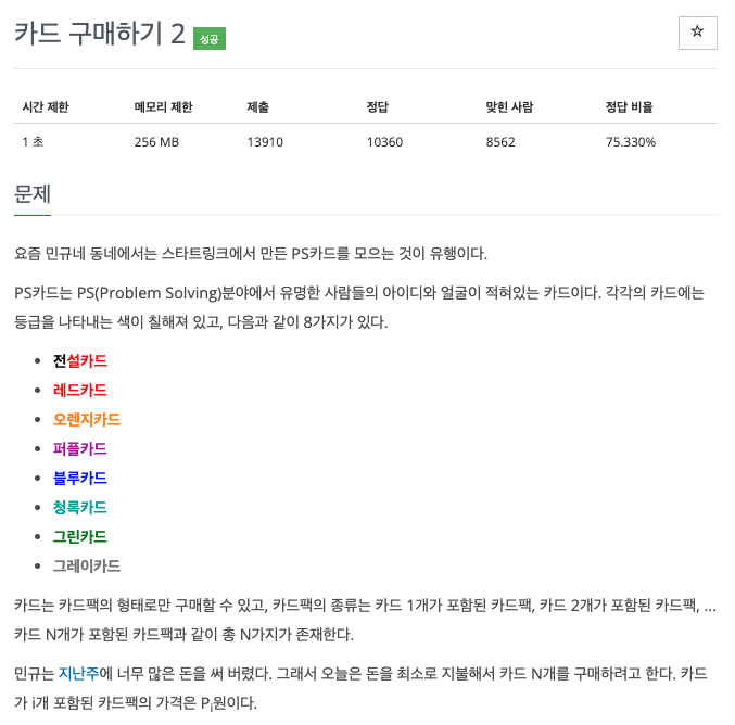 11052 - 카드 구매하기