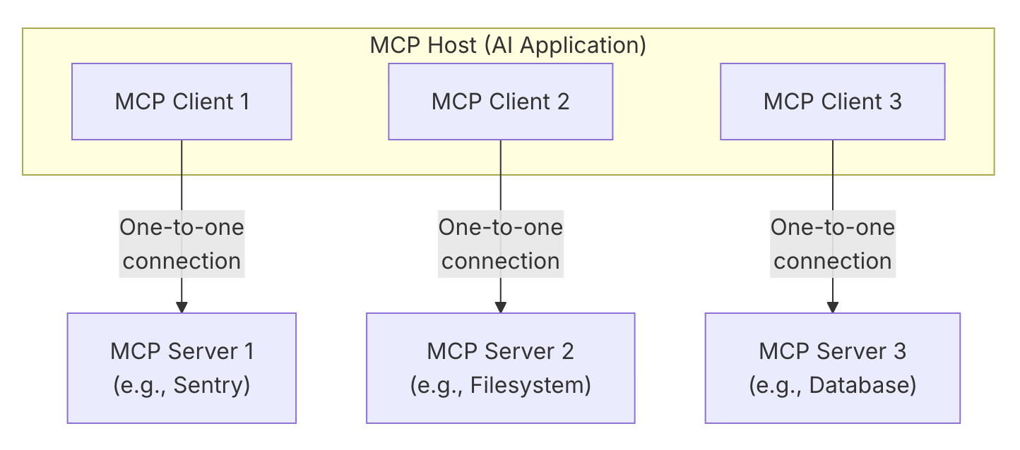 - MCP 클라이언트: MCP 서버와 전용 일대일 연결 유지