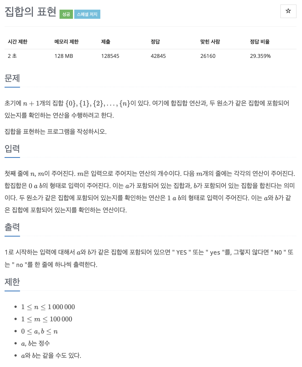 / 1 a b: 두 원소가 같은 집합에 포함되어 있는지 확인)
