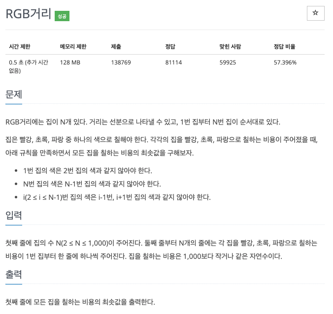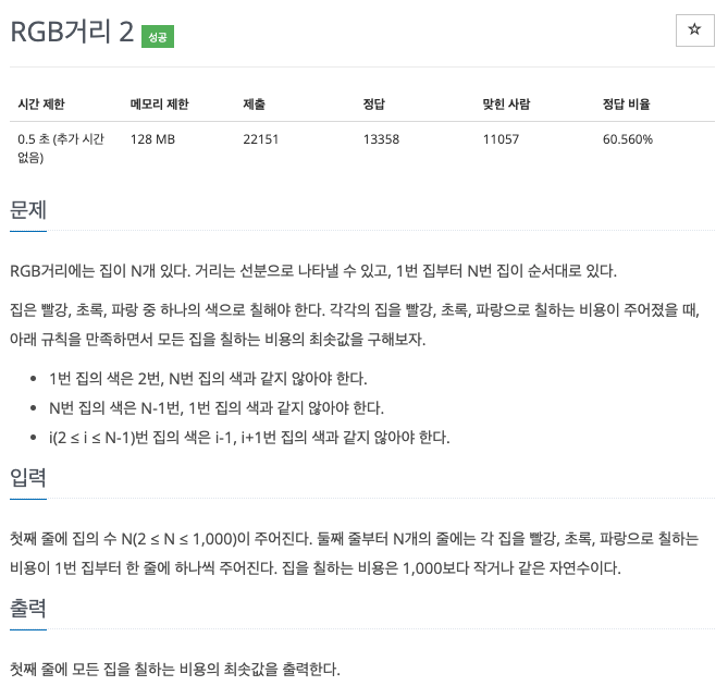 RGB 거리에는 집이 N개 있음/ 거리는 선분으로 나타낼 수 있고 1 ~ N번 집 순서대로 있음