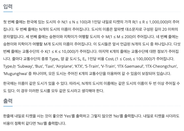 출력: 내일로 티켓을 사는 것이 좋으면 Yes / 그렇지 않으면 No