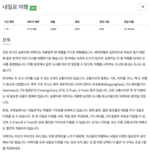 - 내일로 여행(`rail`): `R`(티켓값) + 할인된 구간 비용들의 합