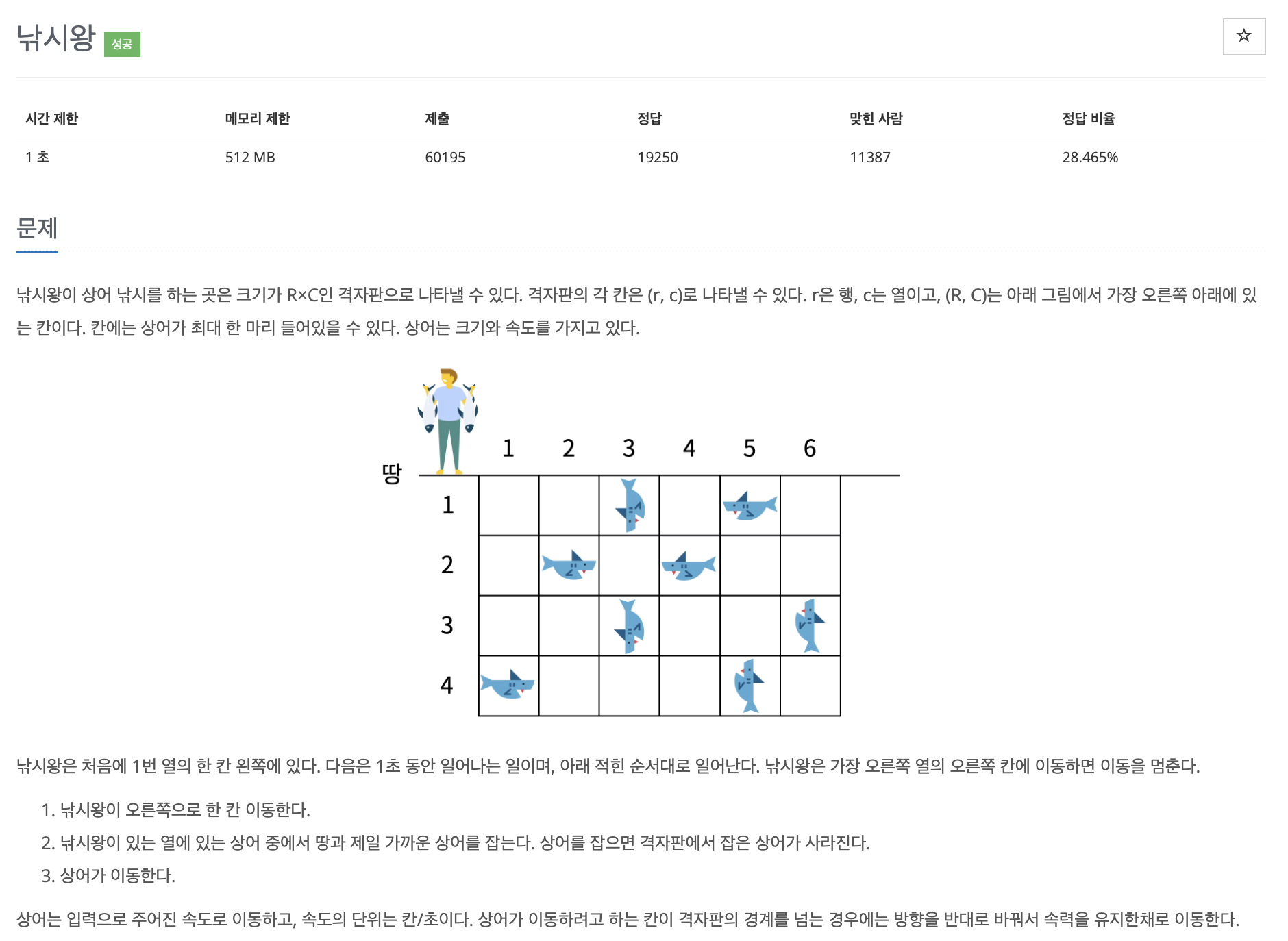 1. 낚시왕 오른쪽으로 한 칸 이동