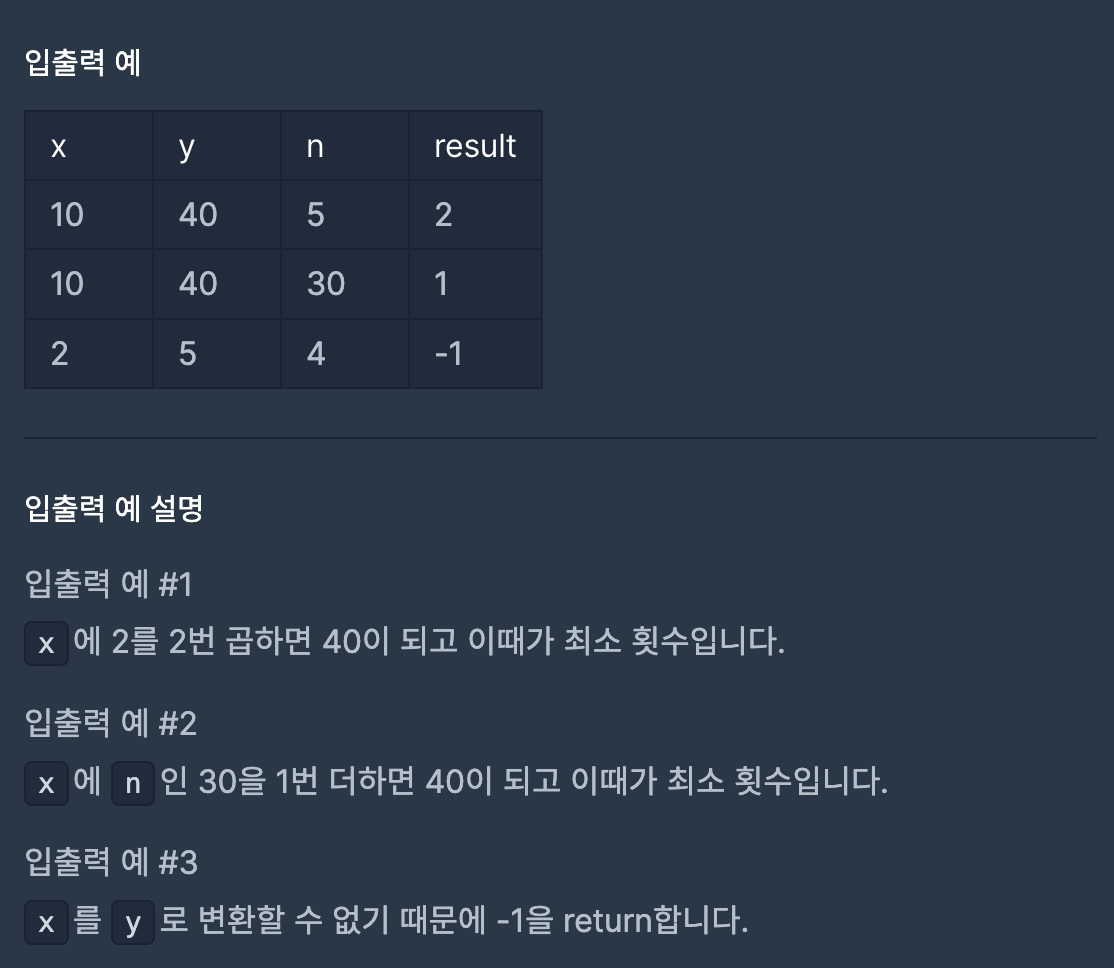 public int solution(int x, int y, int n) {
