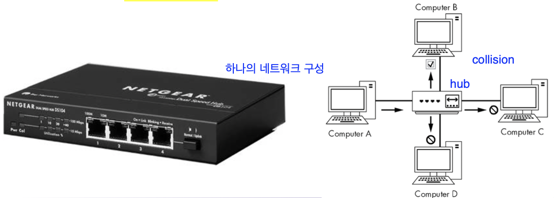 ex. if com 포트 1 of a 4-prot hub -data-> com 포트2, the hubs sends those pacekts to prots 2,3, and 4
