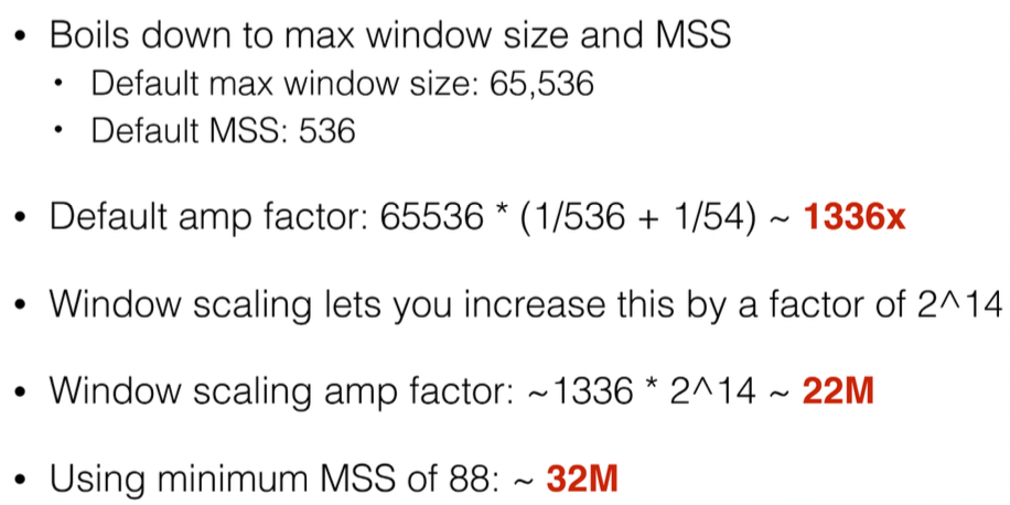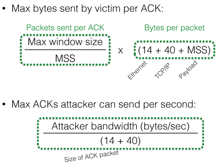 - 무조건적인 ACK -> TCP 혼잡제어 기법 역이용
