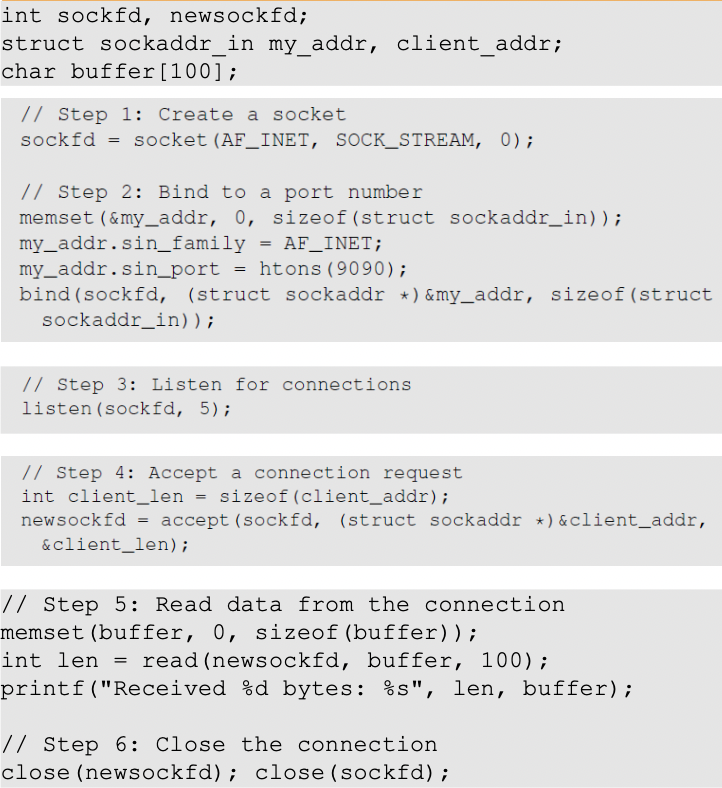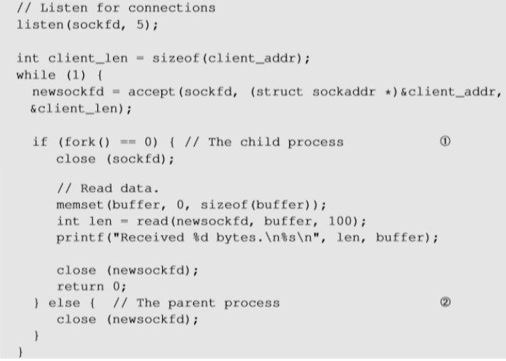 - App calls listen() to infrom the OS that the App is ready to accept clients.