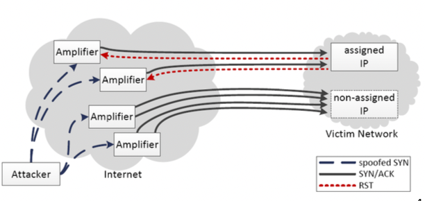 - Amplifier가 곡역자가 victim의 주소로 보낸 패킷에 계속 응답하도록 함