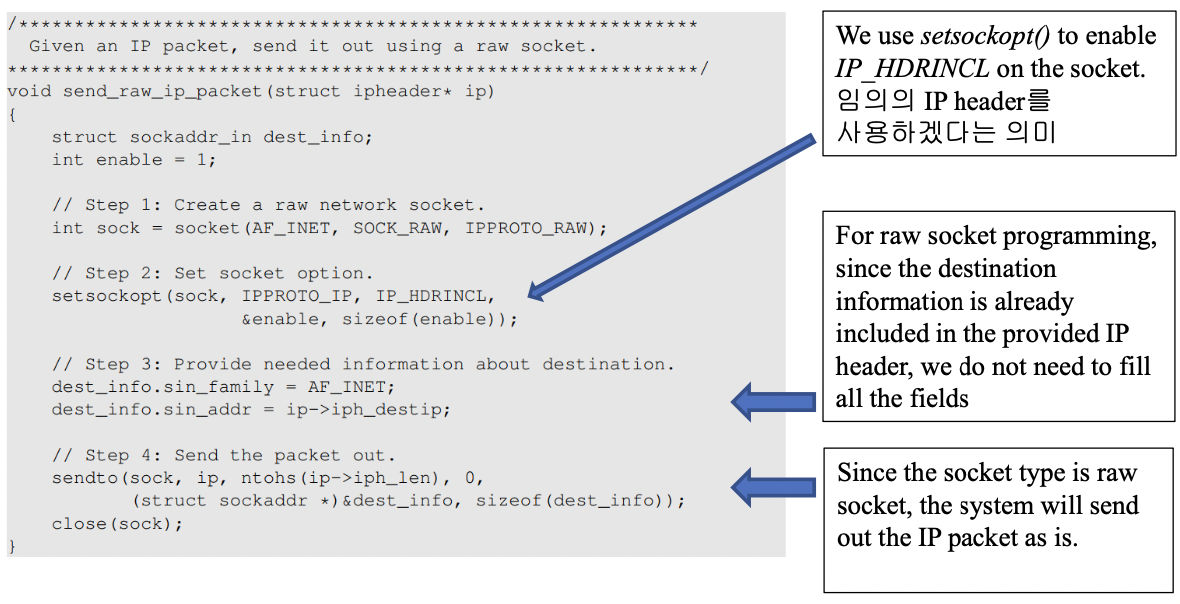 - 데이터 전송 -> 패킷 직접 생성X, buffer에 쓰기만