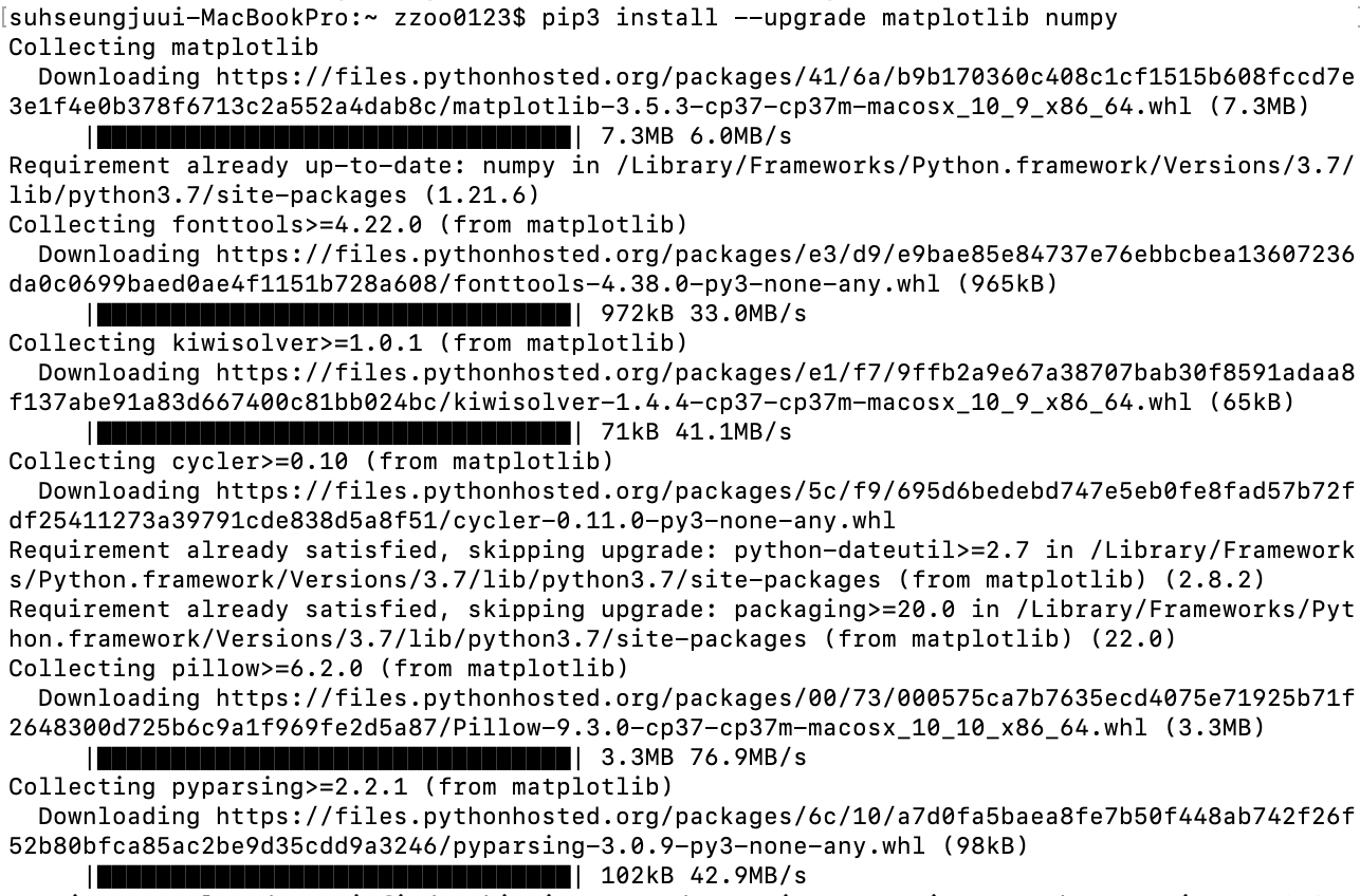 2) pip3 install --upgrade jupyter matplotlib numpy